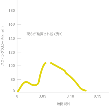 遅いスウィングスピード時にNamdは硬い物性が維持され、鋭い弾きを生む。