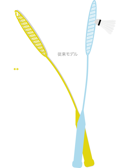 ヨネックス独自の四角いフレーム形状「アイソメトリック」は、縦横のストリングの長さを均等化する事で、一般的な円形フレームに比べ上下左右に広いスウィートエリアを実現。ヨネックスから生まれたこの技術は、テニスでトッププレーヤーと共に数々のタイトルを獲得した後、1992年発売のアイソメトリック500にバドミントンラケットとしては世界で初めて搭載されました。以来、ワールドスタンダードとして数多くのプレーヤーにアイソメトリックは親しまれています。