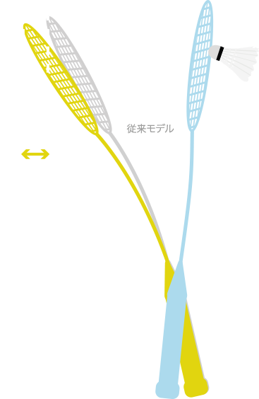 インパクトにかけて強靭なしなりからの急激な復元力を生み、爆発的なスマッシュパワーを与える。