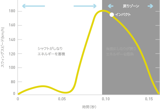 強靭なしなりから急激に復元するシャフトが、インパクトで爆発的パワーを発揮。