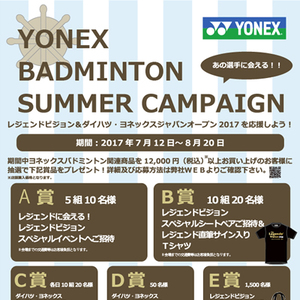 あの選手に会えるかも!?『ヨネックスバドミントン サマーキャンペーン~レジェンドビジョン&ダイハツ・ヨネックスジャパンオープン2017を応援しよう~』を開催いたします