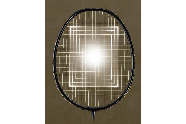 フレームの10時・2時方向、ジョイントまわりの断面積を大きくガッチリとさせ、フレーム剛性を向上させたことでシャトルをしっかりと抑え込みます。また、空気抵抗を削減させることで振り抜きを高める効果もあります。相反する操作性とパワーを両立する設計です。