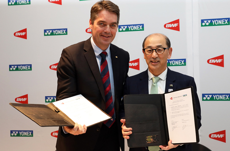 ヨネックスはバドミントンの普及と発展を願い、世界バドミントン連盟と同連盟主催の主要3大会への5年間にわたる用具等の提供について契約を締結いたしました。