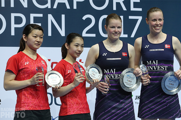 リオデジャネイロオリンピック決勝戦と同じ対戦となった女子ダブルスは日本代表の高橋礼華&松友美佐紀がクリスティナ・ペダセン&カミラ・リター・ユール(デンマーク)と対戦。 ペダセン&ユールがファイナルゲームに持ち込まれたものの、ライバル対決を制し優勝しました。