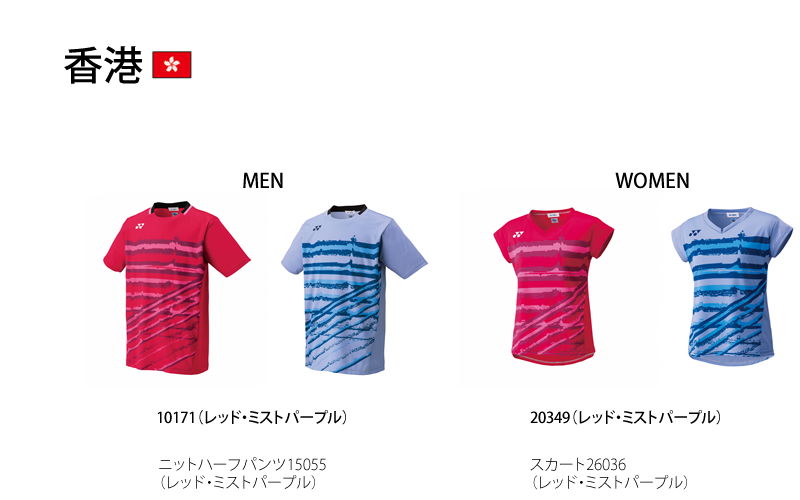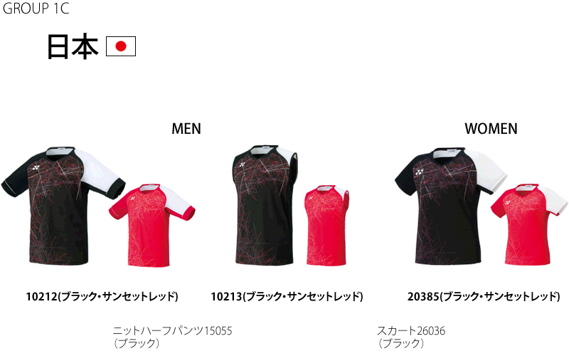 同杯では多くのチームがヨネックスのウェアを纏って戦いに臨みます。ここでは前回大会で躍進した日本をはじめ、着用する主なチームのウェアとカラー、搭載機能をご紹介します。