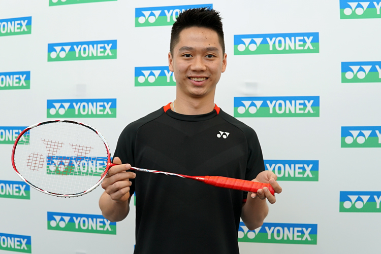スディルマンカップ会場で新デザインのARCSABER11を手にするケビン・サンジャヤ