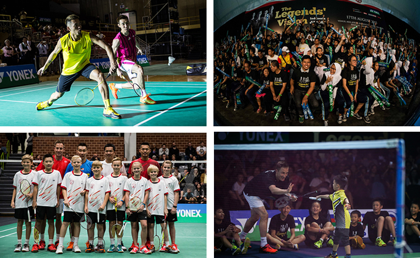 バドミントンを世界のメジャースポーツにしたいと願うトッププレーヤーであるピーター・ゲード(デンマーク)、リン・ダン(中国)、リー・チョンウェイ(マレーシア)、タウフィック・ヒダヤット(インドネシア)は数々の"No.1"を積み上げてきた世界のレジェンドです。弊社では「The Legends' Vision」という彼らのプロジェクトを2015年から支援しております。世界中にバドミントンを広め、スポーツを通じて世界を豊かにしていくための活動は、これまでに4つの会場で開催されました。北京やジャカルタなどのすべての会場がこのレジェンド達の妙技を見ようと観客大入り満員となり、メディアも多く取材に訪れるなど、非常に高い関心を集めています。
