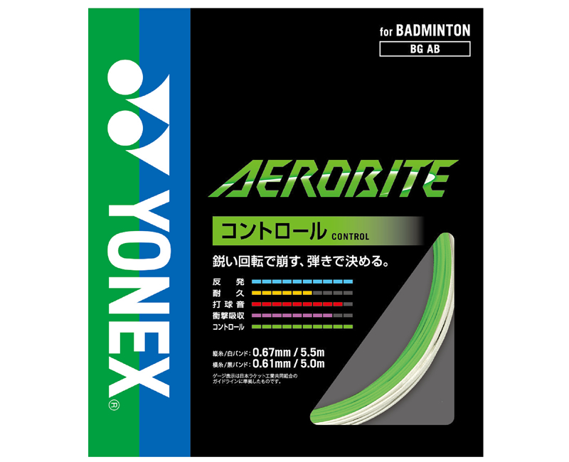 ネット間近から相手のネット際に落とす"ヘアピン"、シャトルを切るように斜めに打って回転を強くして相手陣地に沈ませる"カット"。このようなショットで相手を崩して得点へと繋げるプレースタイルが近年のバドミントンでは多く見られます。エアロバイトは縦糸を太く摩擦力を大きくするコーティングを施すことで、シャトルを軽く弾いた時にも鋭い回転を掛けやすくしました。対照的に横糸は細く低摩擦とすることで、シャトルに当たる縦糸が大きく動き素早く戻るようにして、回転を掛けやすくし打ち返されにくいカットを打つことができます。また、細い横糸の採用でスピード性能も高く強い弾きを生み出します。
