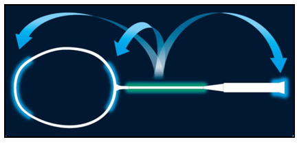 捻じれを抑え、シャフトをしなりやすくした形状が、しなりによって溜まったエネルギーをロスなくシャトルへと伝えます。また、面のブレが少なくなり、コントロール性も向上します。