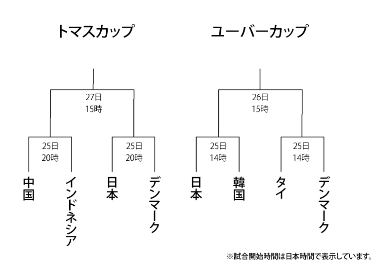 また、ユーバーカップでは、こちらもグループリーグを圧倒的な力で1位突破した勢いを維持して、ライバル韓国と激突。山口茜(再春館製薬所)、福島由紀&廣田彩花(岐阜トリッキーパンダース)らトップランカーをはじめ、層の厚い日本が悲願である37年ぶりの優勝まで突き進めるか!?
