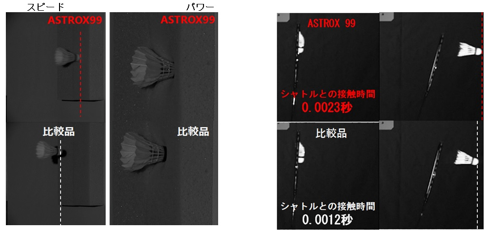[右] ASTROX 99の方がシャトルの射出速度が速くなっています。