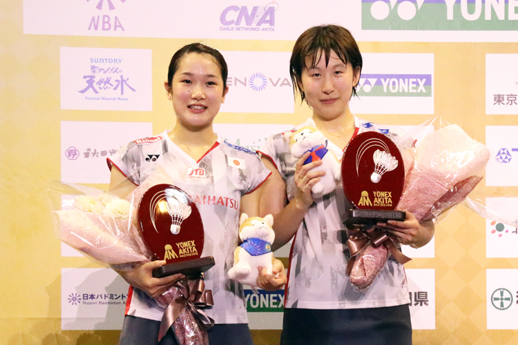 女子ダブルスでは、今季5勝で世界ランキングを14位まで上げてきたヨネックスバドミントンチームの櫻本絢子&髙畑祐紀子ペアと志田千陽&松山奈未(再春館製薬所)との、前週のシンガポールオープンと同じ対決が実現。試合は、主導権を最後まで渡さなかった櫻本&髙畑ペアが、23-21、21-11のストレートで勝利してシンガポールに続く2種連続V。今季6勝目を秋田マスターズの初代チャンピオンという形で成し遂げました。