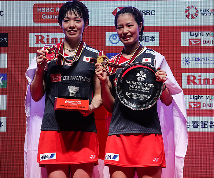 女子ダブルスは世界ランキング1位の福島由紀&廣田彩花ペア(岐阜トリッキーパンダース)と2位の中国ペアとの対決となり、福島&廣田ペアが21−15、21−12のストレートで勝利し、ジャパンオープン初優勝を飾りました。