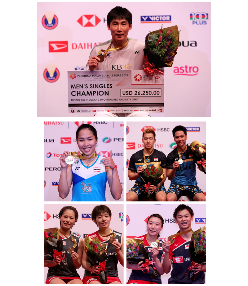 2019シーズン最初の上位大会『マレーシアマスターズ』(Super500)の各種目決勝が1月20日に行われ、ヨネックス使用選手が大会を席巻しました。男子シングルスでは、弊社と先日、用具使用契約を締結した韓国代表チームのソン・ワンホがランキング上位対決を制して優勝を飾りました。