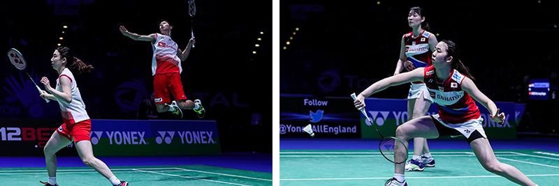 日本勢は今大会の準決勝、決勝戦限定モデルウェアも着用して試合に臨みました。大会2連覇を狙う混合ダブルスの渡辺勇大&東野有紗ペア(日本ユニシス)は昨年の決勝戦と同じく、世界ランキング1位の中国ペアと対戦。粘り強く喰らいつきますが、17-21、20-22で惜しくも準優勝。また、女子ダブルスの永原和可那&松本麻佑ペア(北都銀行)は今季初優勝を目指し、元世界ランキング1位の中国ペアとの戦いに挑みましたが、こちらも準優勝となりました。