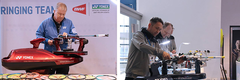 今大会でヨネックスが高品質のシャトルコックなどの用具提供を始めて36年。今年もヨネックスストリンギングチームが大会と選手を支えました。トップストリンガーが様々な国際大会での経験に基づいた確かな技術と、日本製の高性能ストリンギングマシンによるサービスを提供し、プレーヤーの様々なニーズに応え、実力以上の力が発揮できるように活動を行ないました。これからもヨネックスストリンギングンチームは〝最良のパートナー″として全英選手権をサポートしていきます。