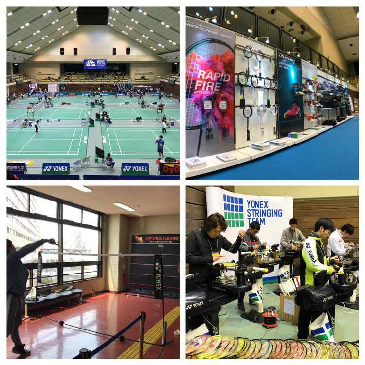 弊社では今大会もシャトルコックやコートマットの提供、ヨネックスストリンギングチームの活動で大会を支えてまいりました。コート横で実施した新製品展示や販売ブース、STEEP ATTACK CHALLENGEコーナーは多くのお客様で賑わいました。今大会もたくさんのご来場とご声援をありがとうございまいした。