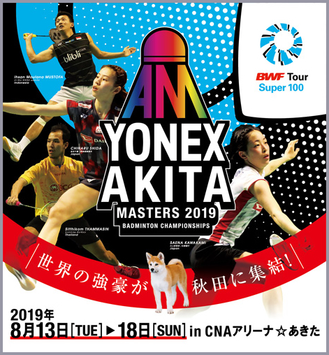 国内で3つめの国際大会となる「ヨネックス秋田マスターズ2019」が8月13日(火)から18日(日)まで秋田県秋田市のCNAアリーナあきたで開催されます。