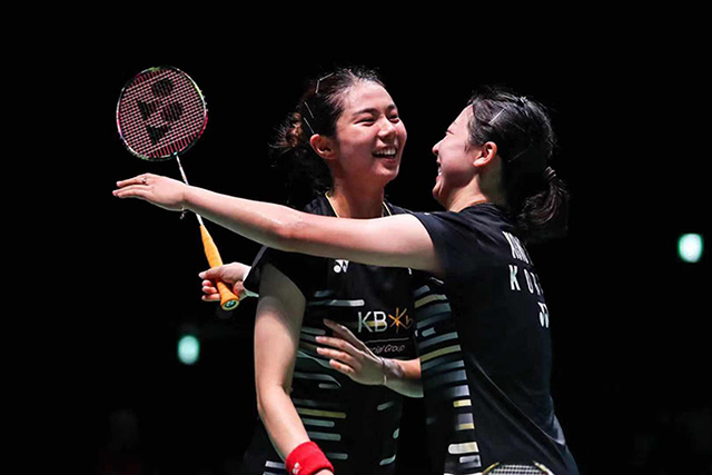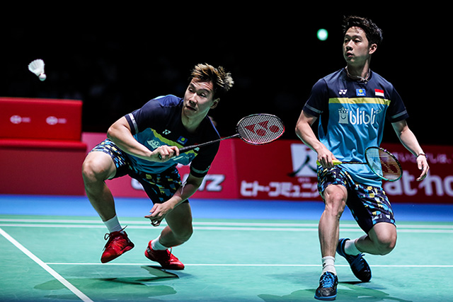 先週のインドネシアオープンと同じ組み合わせになった男子ダブルスは、ギデオン&スカムルヨがモハマド・アッサン&ヘンドラ・セティアワンとのインドネシア対決に21-18、23-21と今大会でも勝利。見事に大会3連覇を成し遂げました! 女子ダブルスでは、大会初優勝を目指すキム・ソヨン&コン・ヒヨン(韓国)が同じく初優勝を目指す松本麻佑&永原和可那ペア(北都銀行)を21-12、21-12で下し、初のジャパンオープンでの栄冠を勝ち取りました。