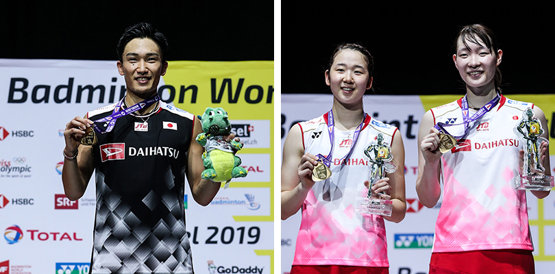 『世界選手権2019』(スイス・バーゼル)の各種目決勝が8月25日に行われ、男子シングルスの桃田賢斗選手(NTT東日本)、女子ダブルスの永原和可那&松本麻佑ペア(北都銀行)が日本人初となる連覇を達成しました。桃田選手は昨年の世界選手権から使用し始めたASTROX 99を、松本選手は今大会から新製品ラケットNANOFLARE 800を使用しての快挙達成です。