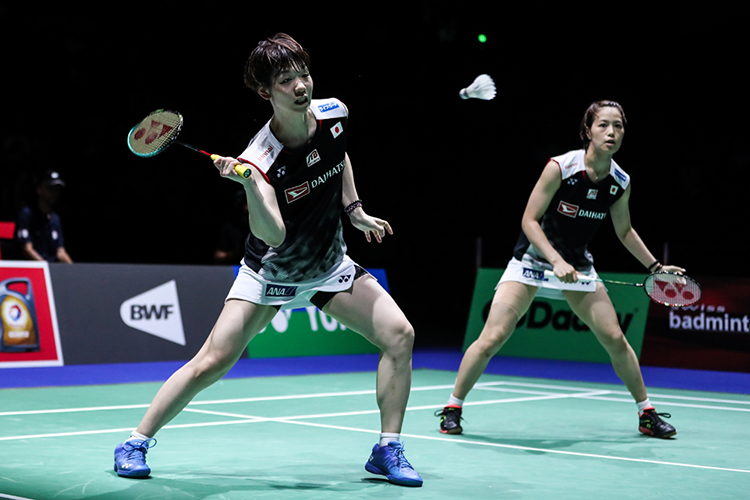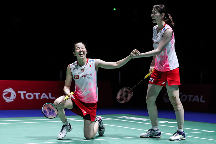 女子ダブルスの決勝は、前大会と同様、永原&松本ペアと福島&廣田ペアの日本人対決が実現。永原&松本が21-11で第1ゲームを取ると、第2ゲームは福島&廣田が22-20で接戦を制し、勝負の行方はファイナルゲームへ。永原&松本が20-15と優勝に王手をかけるものの、福島&廣田が20-20まで追いつき、どちらが勝ってもおかしくない一進一退の攻防を繰り広げますが、最後は永原&松本が23-21で勝利。1時間25分にも及んだ手に汗握る大熱戦に会場は大いに沸きました。永原&松本は日本勢初の大会連覇を達成して世界女王の実力を世界に示し、福島&廣田は3大会連続の銀メダルとなりました。