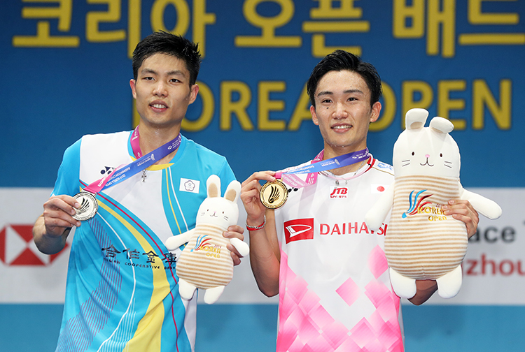 男子シングルスでは世界ランキング1位の桃田賢斗選手(NTT東日本)と2位のチョウ・ティエンチェ(チャイニーズタイペイ)との世界頂上対決が実現。結果は、21-19、21-17で桃田選手がストレートの勝利を飾り、先週のチャイナオープンに続いて2週連続で優勝!今季通算8勝目を飾り、絶対王者の貫禄を示しました。
