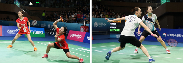 韓国勢対決となった女子ダブルス(左)キム・ソヨン&コン・ヒヨン (右)イ・ソヒ&シン・スンチャン