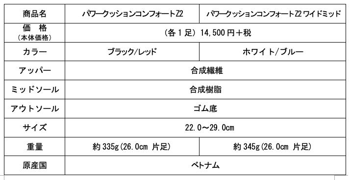 (左から)POWER CUSHION COMFORT Z 2 [ブラック/レッド]、POWER CUSHION COMFORT Z 2 WIDE MID [ホワイト/ブルー]