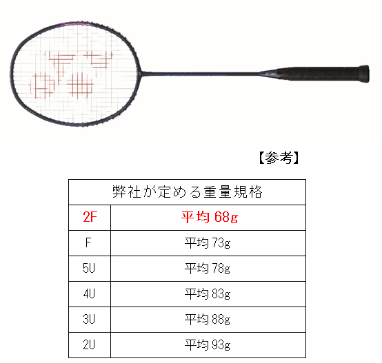 他のASTROXシリーズ一例:ASTROX 99...[3U平均88g、4U平均83g]、ASTROX 55...[5U平均78g]