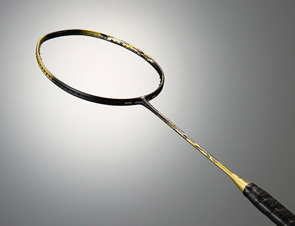 さらに、シャトルの弾きを大きく高める構造として、フレーム上部に弾性率の高いカーボンを配置し、下部には強度と高弾性を併せ持つ新カーボン素材「トレカ®M40X※」を用いた「ソニックフレアシステム」を採用。これまでヘッドライトラケットの最軽量だった4U[平均83g]の壁を突破し、初めて5U[平均78g]の軽さを実現したラケットです。
