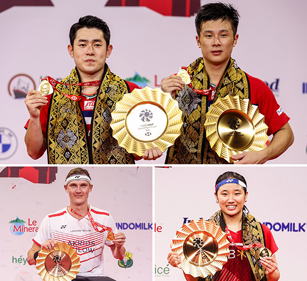 2021年の各種目上位8選手(組)が年間王者を争う『BWFワールドツアーファイナルズ2021』(インドネシア・バリ)の各種目決勝が12月5日に行われ、当社用具使用選手が全種目で優勝。男子ダブルスの保木卓朗&小林優吾ペアが悲願のツアー年間王者に輝きました。