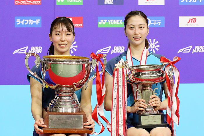 『第75回 全日本総合バドミントン選手権大会』(東京・武蔵野の森総合スポーツプラザ)の各種目決勝が2021年12月30日に行われ、女子ダブルスでは保原彩夏&宮浦玲奈ペア(ヨネックス)が念願の初優勝を勝ち取りました。