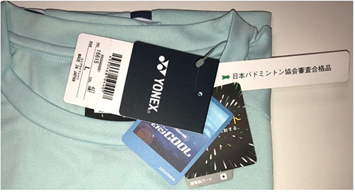このたび、2022年1月より発売致しました『16615 ドライTシャツ』において、審査合格品ではないにも関わらず、「日本バドミントン協会審査合格品」吊り下げタグが付いた商品が一部混在していることが判明致しました。