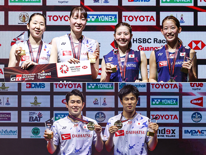『タイオープン2022』(Super500)の各種目決勝が5月22日にタイ・バンコクで行われ、女子ダブルスは志田千陽&松山奈未ペア(再春館製薬所)が松本麻佑&永原和可那ペア(北都銀行)との日本人対決を制して優勝。男子ダブルスの保木卓朗&小林優吾ペア(トナミ運輸)も優勝を飾りました。