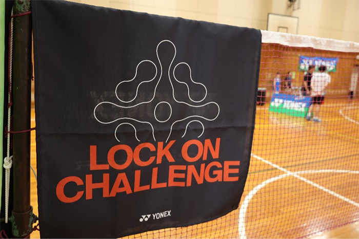 LOCK ON CHALLENGE は、ARCSABERシリーズのラケットで得点が書かれたマットに向かって10球シャトルを打ち、合計得点(1000点満点)を競うチャレンジ企画で、午前と午後でそれぞれ約20名の方に参加いただきました。