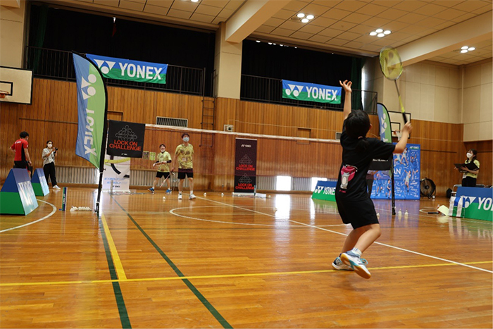 参加者はARCSABERシリーズのラケットを打ち比べ、自分のプレースタイルと合ったラケットを選んで挑戦。高得点を獲得するために真剣な表情でコートの隅を狙ってシャトルを打ち込みました。