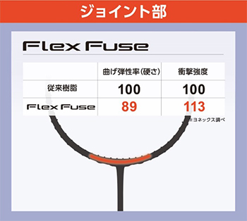 新素材「Flex Fuse」をジョイント部に採用することにより、ASTROX 77使用者に合わせたマイルドな打球感を実現。