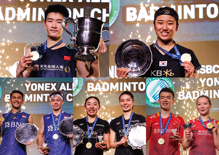混合ダブルスは、優勝筆頭候補のジェン・スーウェイ&ファン・ヤーチョンペア(中国)が4年ぶりに頂点奪回。決勝戦、韓国ペアに3ゲームに持ち込まれますが、緊張の場面でも試合運びのうまさが目立ち、全英2回目の優勝を勝ち取りました。
