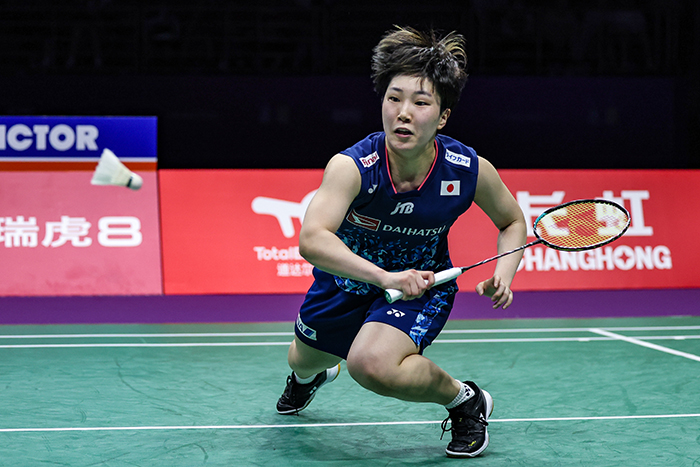 中国戦で勝利を挙げた女子シングルスの山口茜。「希望の光」をデザインコンセプトにしたウェアを着て、日本に2勝目をもたらした