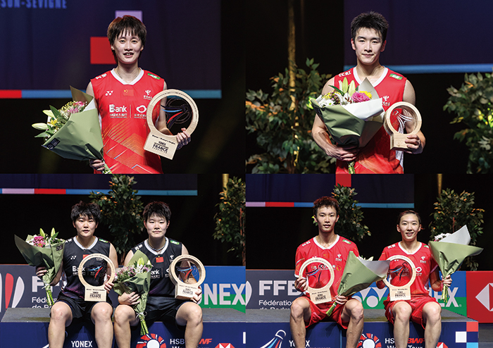 女子ダブルスは、19歳&20歳のリョウ・シェンシュウ&タン・ニンペア(中国)、混合ダブルスでは、22歳&23歳のジャン・ジェンバン&ウェイ・ヤーシンペア(中国)が、Super 750グレードの大会で初優勝を飾りました。女子シングルスではチェン・ユーフェイ(中国)が、デンマークオープンに続いて優勝を果たしました。