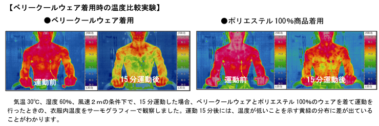ベリークールは、選手たちをサポートするために生まれたウェア機能です。水分と接すると周りの熱を吸収する性質を持つ「キシリトール」を生地に使用し、選手がかく汗に反応させることで、衣服内の温度を約3℃下げることに成功。ベリークールのクーリング効果が90分間の激しいプレーによる身体への負担を軽減し、選手のパフォーマンスを後押しします