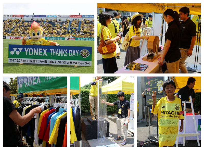 6回目を迎える今回のヨネックスサンクスデーは、ヨネックス特設ブースの設置と先着5,000名の方に『YONEX×柏から世界へ ユニフォームキーホルダー』の配布を行ないます。また、ホームゲート付近に設置する特設ブース内では選手サイン入りグッズが当たる抽選会や、ユニフォームに使用されている衣服内を3℃低く保つ涼感機能「ベリークール」の実験など、商品の高機能を体験頂けるコーナーもご用意いたします。たくさんのご来場をお待ちしています!