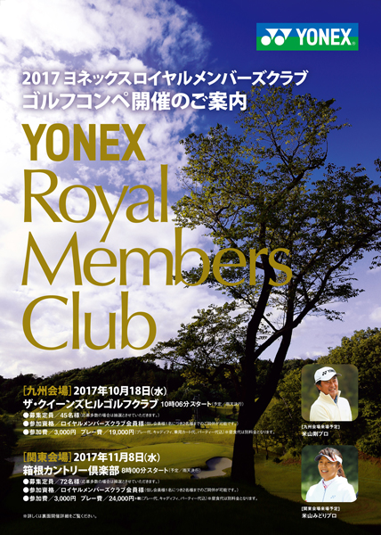 ヨネックスゴルフクラブ「Royalシリーズ」のオーナー様の会員組織「ロイヤルメンバーズクラブ」会員の方々を対象としたイベント「2017ヨネックスロイヤルメンバーズクラブゴルフコンペ」を九州・関東の2会場にて開催致します。