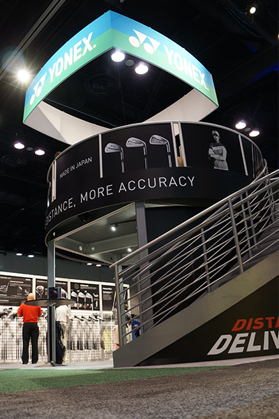 数多くのゴルフ関連企業が出展し、ゴルフ関係者にお披露目するPGAショーに今年もヨネックスは出展しています。今年は、2018年のニューモデルEZONE GTシリーズをはじめ、グラファイトハイブリッド鍛造アイアンシリーズなど数多くのアイテムを展示して来場者を迎えています。