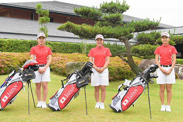 2015年から正式種目に加わり3年ぶり2度目の優勝を狙う日本女子チーム :左から西村優菜選手、古江彩佳選手、安田祐香選手