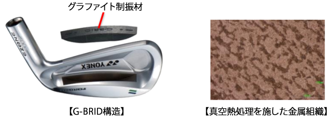 また、フェース裏側にスリットを設け、内部にグラファイト制振材を複合するG-BRID(グラファイトハイブリッド)構造を採用し、振動の抑制と低重心化を実現。さらに軟鉄に真空熱処理製法※を用いて金属組織の大きさを均一にすることで、柔らかな打球感を生み、ボールのコントロール性が向上します。