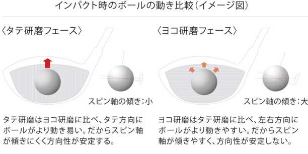 ボールが縦方向に動きやすいため、スピン軸が傾きにくく、サイドスピンが軽減し直進性が向上します。