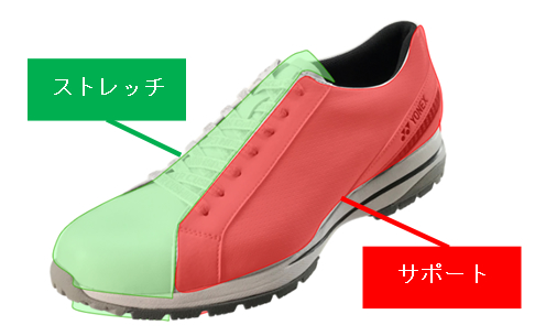 2.適材適所のアッパー素材配置でプレーを快適にサポート
