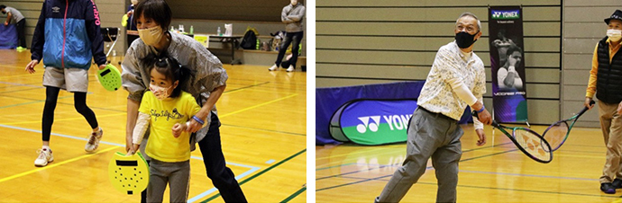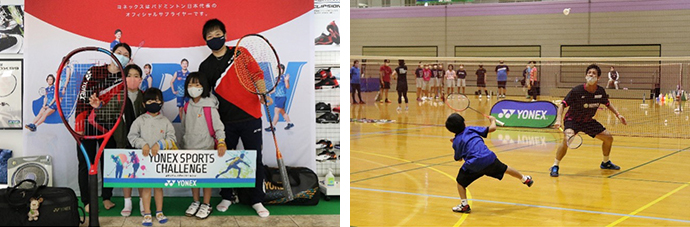 11月6日に大阪府・四條畷市立市民体育館にて、新型肺炎感染対策のため同施設の利用者に向けてクローズドで開催し、約300名の方々が参加。バドミントン、テニス、ゴルフといった種目で、ヨネックス製品を使用してのクリニックやテニピン体験、シミュレーションゴルフを活用した「ぶっ飛びチャレンジ」などをお楽しみいただきました。また、豪華賞品が当たる抽選会や足型測定も実施しました。