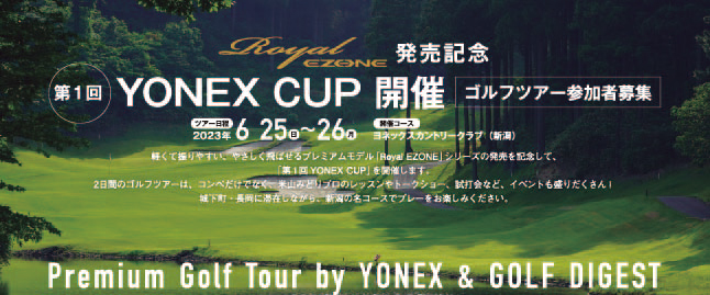 「飛びへの拘りに終わりはない。」をコンセプトに、軽くて振りやすい、やさしく飛ばせる弊社最高級・シニア向けモデル「Royal EZONEシリーズ」の発売を記念して、第1回 YONEX CUPを新潟県長岡市のヨネックスカントリークラブにおいて開催いたします。